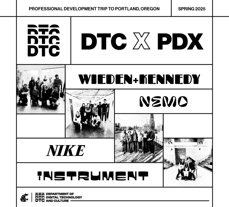 Recently, a group of DTC students headed out to Portland, Oregon, for a multi-day professional development trip led by Professors June T. Sanders and Jacob Riddle. Over the course of the trip, students got an immersive look into four top creative design agencies—Nike, Instrument, Nemo, and Wieden+Kennedy—getting a firsthand glimpse into what it’s actually like to work in the design industry beyond the classroom and our small town of Pullman.